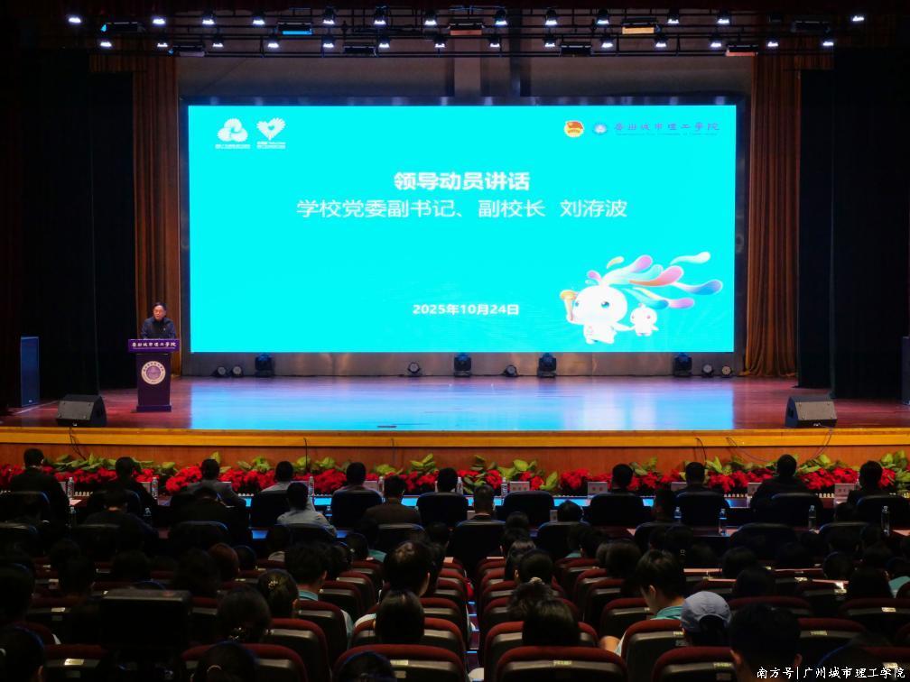 最后,学校党委副书记、副校长刘洊波作动员讲话。他强调“十五运会和残特奥会”是粤港澳三地首次联合承办的大型体育赛事,更是国家推进粤港澳大湾区协同发展的重要举措,意义重大、影响深远。他表示,在开幕式来临之际,将迎来赛程密集、任务繁重的关键阶段,这对志愿服务质量、专业水平和协作能力,提出了更高的标准、更严的要求。他希望全体志愿者能做到以下几点:一是提高站位,深化认识,以最佳状态投入服务;二是严守纪律,团结协作,以最实作风展现形象;三是统筹兼顾,筑牢底线,兼顾好学业、安全与服务。最后,他衷心祝愿广州城市理工学院的志愿者能在志愿服务中收获成长、收获快乐!祝愿“十五运会与残特奥会”圆满成功!